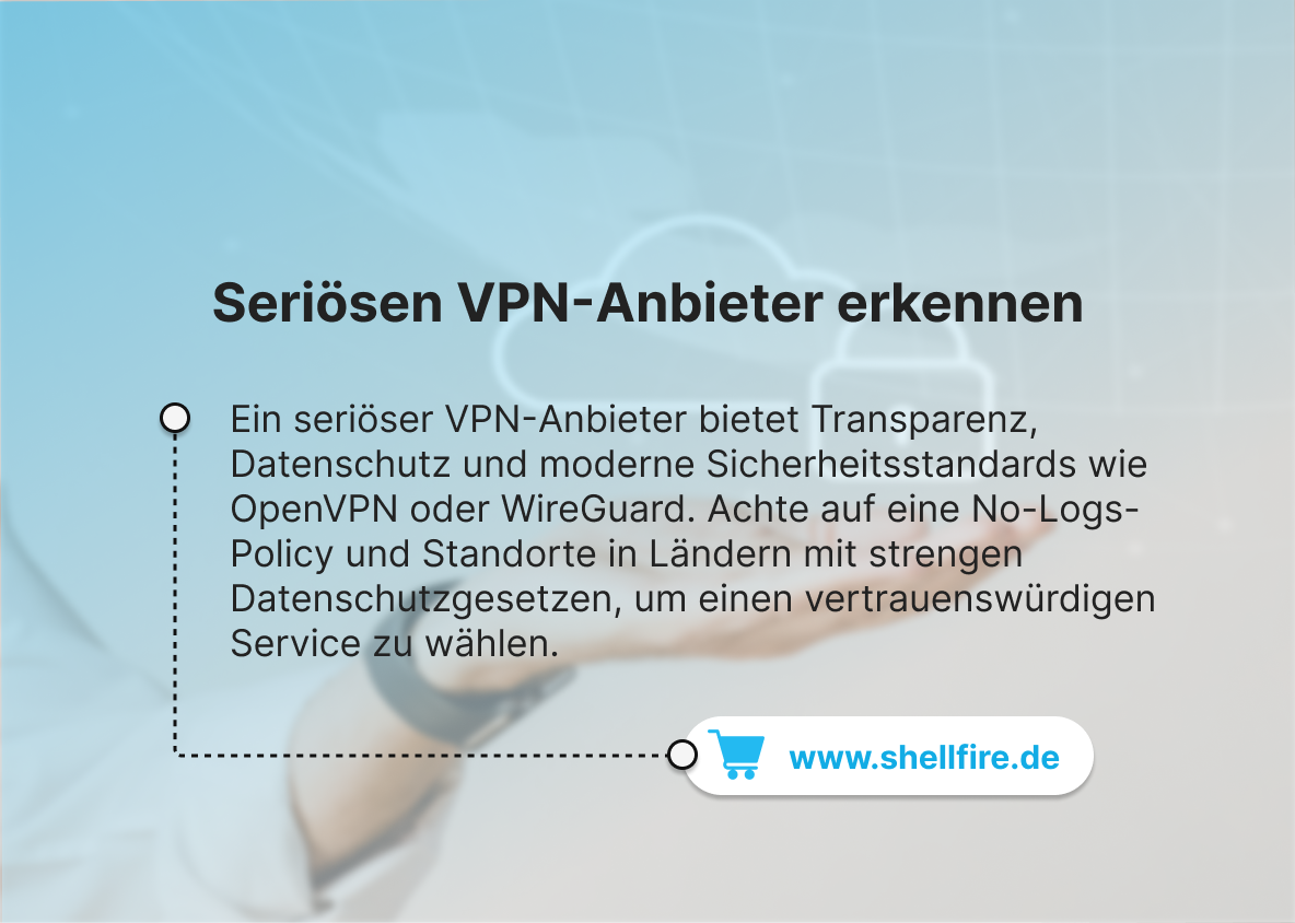 Ein seriöser VPN-Anbieter zeichnet sich durch Transparenz, Datenschutz und klare Sicherheitsstandards aus. Achte darauf, dass der Anbieter eine No-Logs-Policy verfolgt, also keine Daten über deine Aktivitäten speichert. Zusätzlich sind moderne Verschlüsselungsprotokolle wie OpenVPN oder WireGuard ein wichtiger Indikator für Sicherheit.